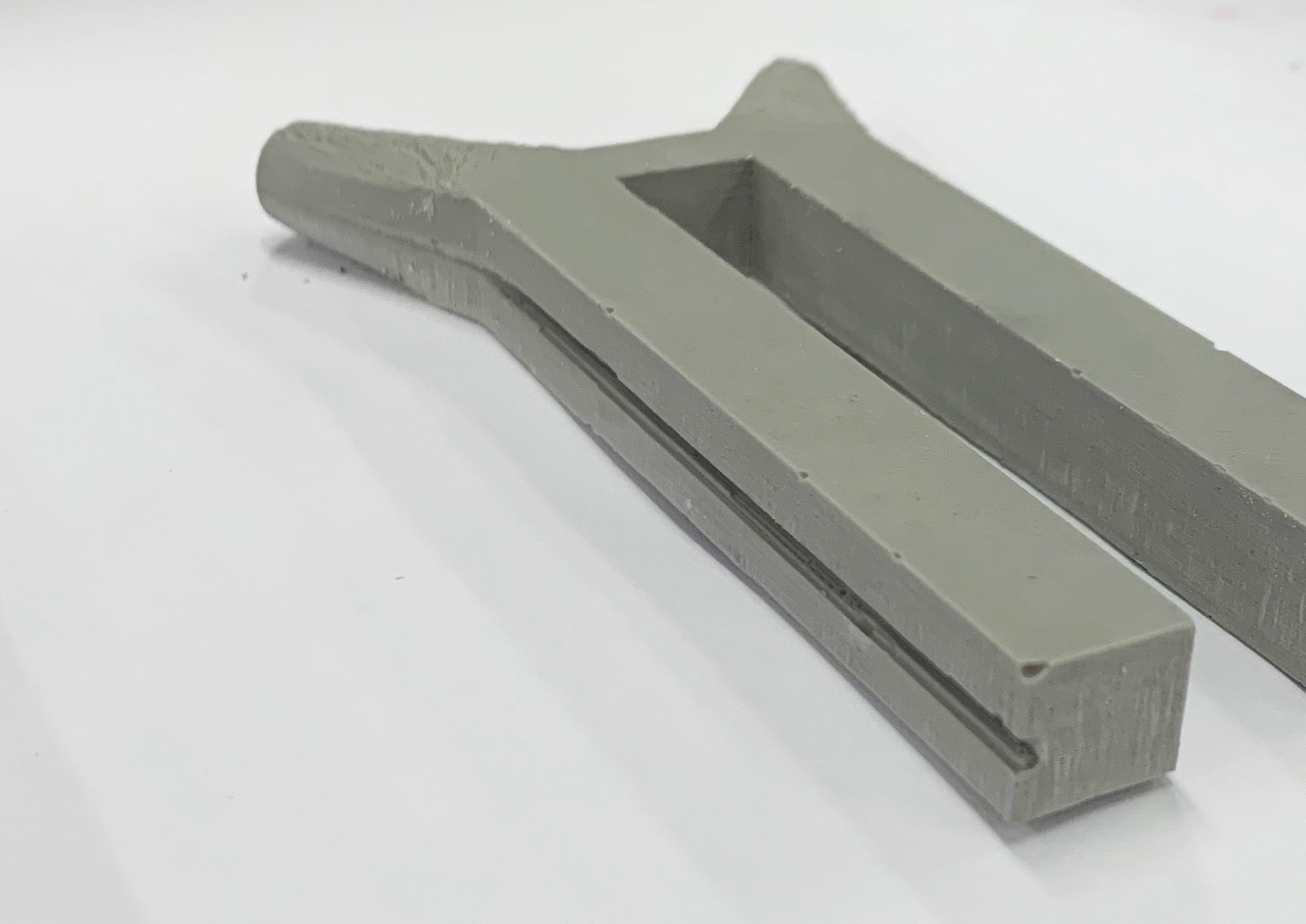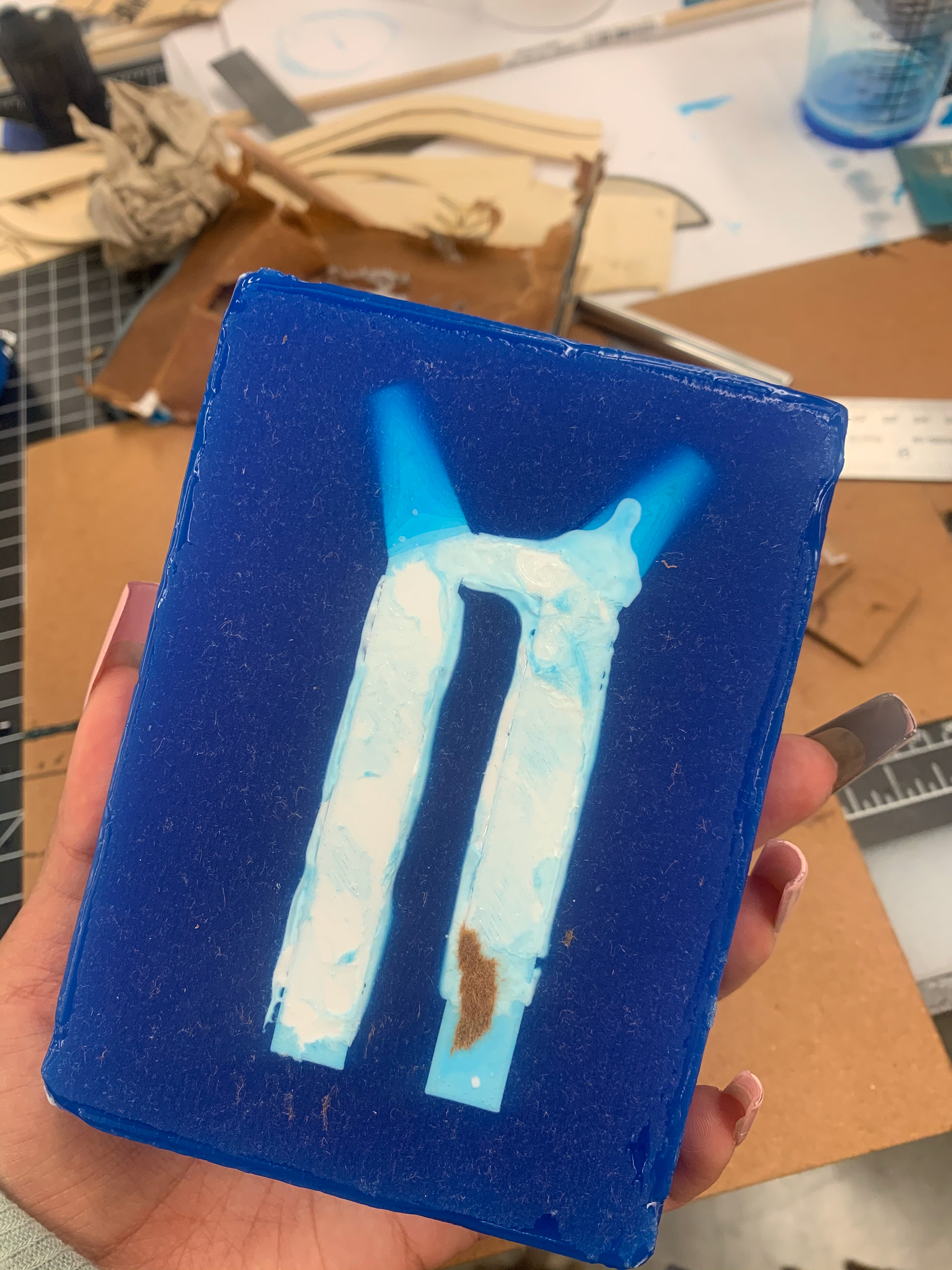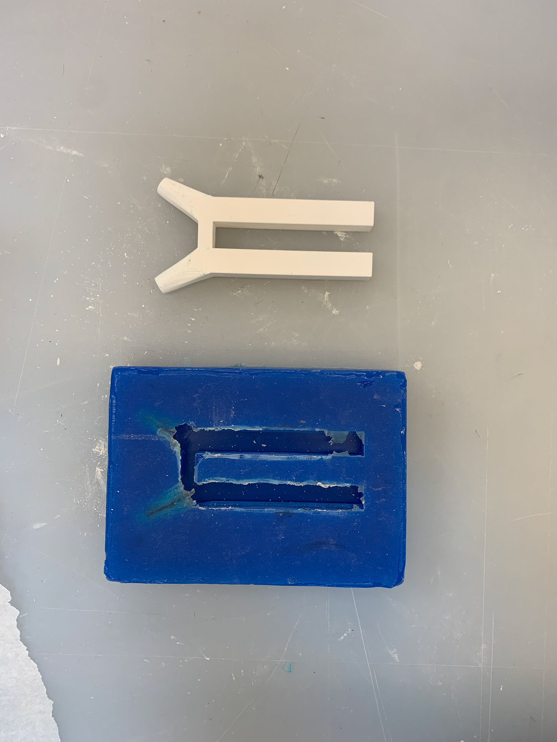 We constructed the H column using a 3-D printed piece that was modeled to the specifics of the structural element in the airport. Once the piece was complete, we set it in a silicone mold, which was then used twice for the rockite bases. This process took two to three days to ensure drying time and durability when taking it out of the mold. The tapered columns that are attached to the H Base were manually sanded then cut in order to create the gradual slendering aspect of the column.