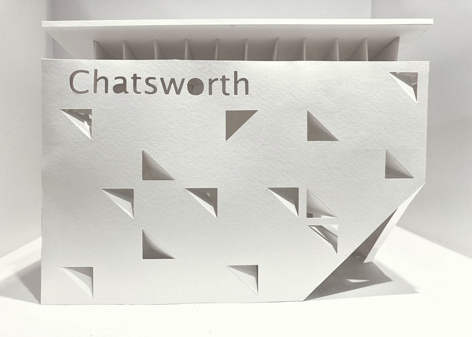 After a site visit to the existing Chatsworth Train Station, the vision was to bring life and excitement to the station. By adding the slits on the side of the facade and a tilted roofline, the building has an open feel that produces interesting light effects.